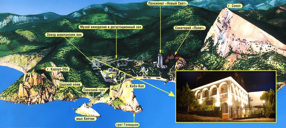 С лета 2020 года лесхоз установил шлагбаумы и таблички с запретами на въезд и проход в заказник, поэтому поставить машину около нас нет возможности. На территории Нового Света есть партковки при въезде и у завода Шампанских Вин Новый Свет. Либо можно припарковать автомобиль ниже нас у жилого дома.